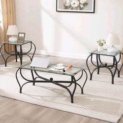 Black Metal Glass Coffee Table 3-Piece Set, Industrial Style Coffee Table with 2 Square Side Tables, Simple Coffee Table for Living Room, Modern Table$149Los Angeles, CA