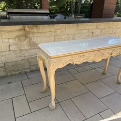 Carved White wash Wood with Polished Travertine Console And Coffee Table$300La Mirada, CA