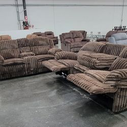 ✅️✅️2 pc chocolate wide welt corduroy sofa with drop down tray and love seat with cup console with recliners on the ends✅️✅️$698Anaheim, CA