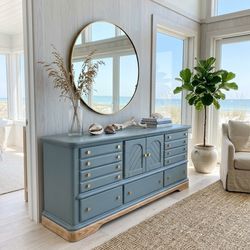 Large Matte Pine Blue Credenza / 9-Drawer Dresser/buffet/tv cabinet– Modern Coastal$450Cypress, CA