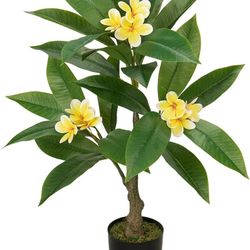 Briful Artificial Plants Indoor 26.77'' Fake Tropical Plumeria Flowers Tree Plants in Black Pot, Hawaiian Yellow Plumeria Faux Frangipani Tree Floor P$25El Monte, CA