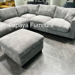 ✅️✅️ 4pc for grey corduroy fabric upholstered sectional sofa with ottoman ✅️✅️$425Downey, CA