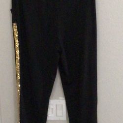 Large Black jogger-style pants with a gold stripe down the side of each leg.$25Montclair, CA