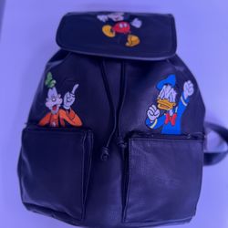 Vintage Disney World Black Faux Leather Mickey Goofy Donald Duck Backpack Y2K,$30Los Angeles, CA