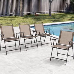 Set of 4 Patio Folding Chairs 4-Pack Dining Chairs Outdoor Portable Sling with Armrest$100Chino, CA