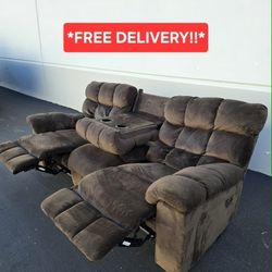 2 Seat Couch Recliner With Storage And Cup Holders$120La Habra Heights, CA