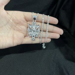925 Sterling Silver Mens Caravaca Cross Crucifix Pendant & Curb Chain $120East Los Angeles, CA