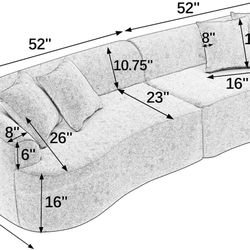 Curved Modular Sectional Sofa in Lamb's Wool Fabric, Modern Compressed Sofa No Assembly, Cozy,Gr$320Ontario, CA