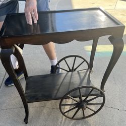 Vintage Mahogany Tea Cart / Bar Cart w/ Wheels – Queen Anne Style Serving Trolley$225West Covina, CA