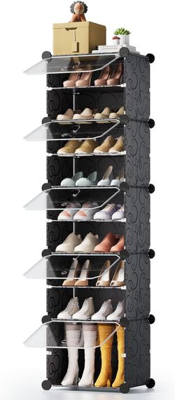 Foldable Shoe Rack with Doors 9Tier 18Pairs Shoe Organizers for Closet, Transparent Entryway Shoe Storage Box, Large Sneaker Shelf with Magnetic Door,$75El Monte, CA