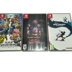 Nintendo Switch Super Smash Bros. Ultimate, Five Nights at Freddy's: Help Wanted 2, Epic mickey$45Santa Fe Springs, CA