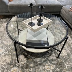 Glass and black metal coffee table with marble bottom$120Los Angeles, CA