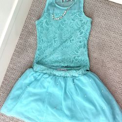 Girls size 10-12 sea green tulle skirt and onesie top with pearl and shimmer details $10Irvine, CA