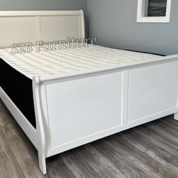 Queen White Sled Wooden Bed With Ortho Mattress Included $459Yorba Linda, CA