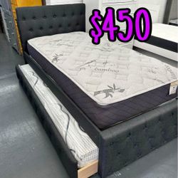 Full Solid Wood Bed With Twin Trundle And Both Mattresses $700$700Wilmington, CA