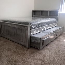 Queen Bed Frame With Mattress New Q Cama Bonita Madera Sólida $999Bell Gardens, CA