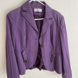 CAVEN Purple Slim-Fitting Blazer • Material: Blended synthetic fiber with a subtle sheen and striped pattern • Color: Purple (with a hint of shimmer) $10San Francisco, CA