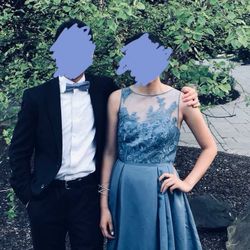 Oleg Cassini blue prom dress with lace and embroidery$200Palo Alto, CA