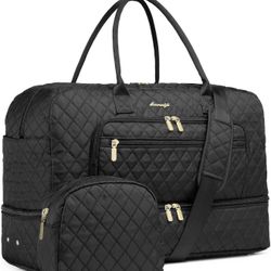 Large Women Travel Duffle Bag, Carry on Bag with Wet Toiletry Pocket for Overnight, Weekend, Yoga, Gym, Business Trips, Sport and Hospital, Black$20Corona, CA
