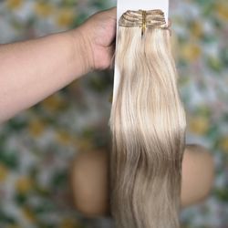 Blonde human hair clip ins 14" new 120Grams$45Hacienda Heights, CA