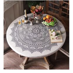 Fitted Round Tablecloth with Elastic Waterproof Reusable Table Cover$9Hacienda Heights, CA