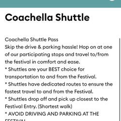 Coachella Shuttle Pass 4 Available - Weekend 1$60Los Angeles, CA