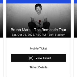 selling 4 10/03 Bruno Mars Los Angeles Tickets $600Lynwood, CA