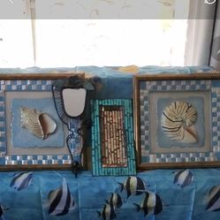 New shower curtain, 2 pictures, tray & mirror$30El Monte, CA