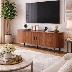 TV Stand with Power Outlet, Modern Media Console with Sliding Doors, Entertainment Center for TVs up to 60 Inch, Adjustable Shelves, Walnut$100Fontana, CA