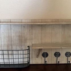 Farmhouse Wall Organizer Shelf w/ Hooks & Basket$25Mission Viejo, CA