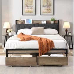 King bed Metal Platform Bed Frame with Upholstery Storage Function Headboard and USB Liner and Footboard with Drawers, No Box Spring Needed, Large Und$120Fontana, CA