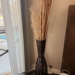 Dark Grey Glass Floor Vase + Decorative Branches Bundle$40Huntington Beach, CA