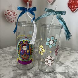 Cartoon Virgin Mary Kids Cup Set of 2 | BPA-Free Plastic Cups w/ Straw $10Artesia, CA