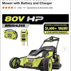 Ryobi 80V HP Brushless Battery Cordless Electric 30 in. Multi-Blade Lawn Mower with Battery and Charger$850Los Angeles, CA