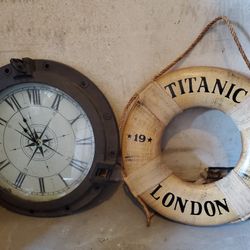 Nautical adventure home decor porthole clock and the titanic 1912 London bouy