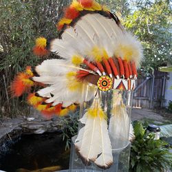 Vintage hand made Indian tribal head dress suade beads and feathers indian chef hat vintage headdress$50Riverside, CA