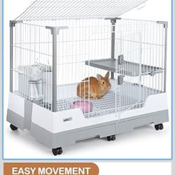 Deluxe Rabbit Cage, 32" × 21" × 26" Large Space Bunny Cage Foldable Small Animal Cage with Pull Out Tray and Caster Platform, Professional Household A$85Hacienda Heights, CA