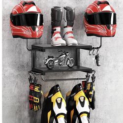 Motorcycle Helmet Holder Wall Mount, 2-Tier Helmet Rack with 2 Hat Stands, Motorcycle Accessories Gear Storage Organizer Display for Men Jackets, Caps$20Riverside, CA