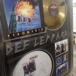 Def Leppard Autographed Signed Drumhead And Gold Record Framed Signed By All Members Of The Band Make A Reasonable Offer Pick Up In Cypress $1Anaheim, CA