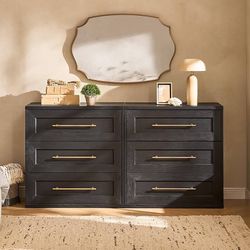 1180c Black 6 Drawer Dresser for Bedroom with Gold Handles, Modern Chest of Drawers, Wooden Dressers Organizer for TV Stand,Living Room, Hallway, Ent$120Bloomington, CA