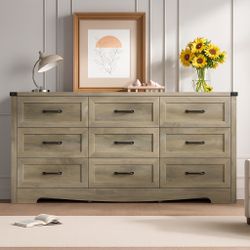 New Dresser for Bedroom, 59'' Wide Chest of Drawers with Natural Wood Texture, 9 Drawer Dresser for Closet with Metal Handles, Sleek Storage Solution $200Whittier, CA