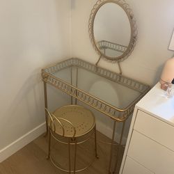 Gold Vanity Desk with Mirror & Stool – Perfect Condition$200Long Beach, CA