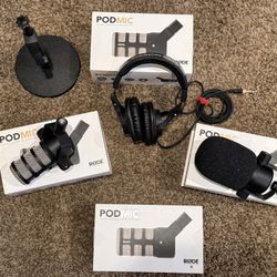 Rode PODMIC, Audio-Technica headphones, Mic Stands & Cables - 4 Ea$500La Mirada, CA