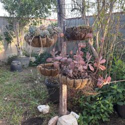 Post With 8 Hanging Baskets With Hangers And Plants $65Fontana, CA