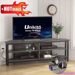 Corner TV Stand With Power Outlet, Corner Entertainment Center Media TV Console Table With 4 Open Storage Cabinet Shelve Wood T-$60El Monte, CA