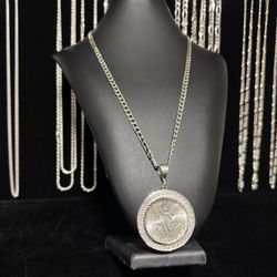 Original silver centenario coin pendant with Versace bezel and Cuban style chain $450Fontana, CA