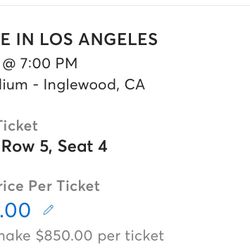 Ye / Kanye West Concert Ticket SEC 123 Row 5, Seat 4$800Baldwin Hills, CA