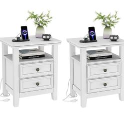 New assembled Nightstand Set of 2, White Night Stand with Charge Station, 20” Sofa End Table with Storage Shelf, Bed Side Table with USB Ports & Outle$120La Mirada, CA