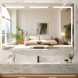 60 x 36 Inch Extra Large Lighted Bathroom Mirror, Large 3-Door Wall Mounted Bathroom Medicine Cabinet with Lights, Dimmable Mirror with Storage, Buil$240Bell Gardens, CA