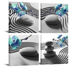 Nachic Wall Zen Wall Art Blue Orchid Stone Canvas Prints Teal Blue Grey Pictures Printing Spa Meditation Room Decor for Bedroom Bathroom Minimalist Bo$10Los Angeles, CA